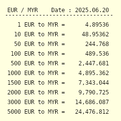 Currency rate euro (eur) to malaysian ringgit (myr).
